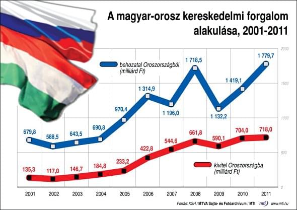 A tavalyi forgalom – 25 százalékos növekedéssel – 12,6 milliárd dollár volt, ami csak kevéssel marad el a 2008-as csúcsév 14 milliárdos adatától. Az Oroszországból érkező tőke felét kitevő Mol-pakett visszavásárlása után is másfélmilliárd dollár orosz befektetés maradt Magyarországon – mondta.